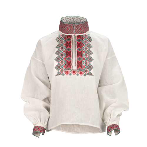 Håndlaget skjorte i bomull med nupereller på krage og mansjetter. Skjorten er åpen i fronten, den kan også leveres i en lukket variant med splitt. Nuperelleskjorten passer til alle bunader.