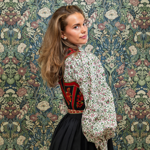 Vidunderlig bomullsskjorte i fin Paisley til bunad, drakt eller vanlig festantrekk. Skjorten lages i kvalitetsbomull som er lett å holde ren. Vaskes i maskin på 40 grader og lett å stryke.